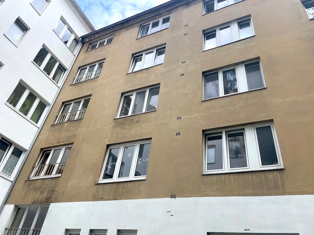 Zum Verkauf steht eine gepflegte Liegenschaft aus den 1950er-Jahren, aufgeteilt nach WEG-Recht, mit voll vermieteten Wohneinheiten sowie einer etablierten Gastronomiefläche im Erdgeschoss. Das ursprüngliche Haus bestand seit 1908 und wurde nach dem Krieg neu erstellt.