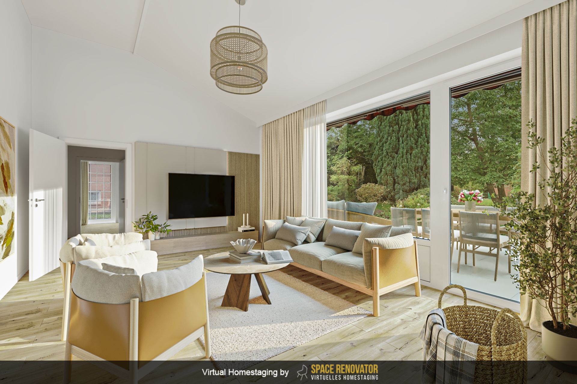– Sonniges, großzügiges Wohnzimmer mit Fliesenbelag und Zugang zur Terrasse