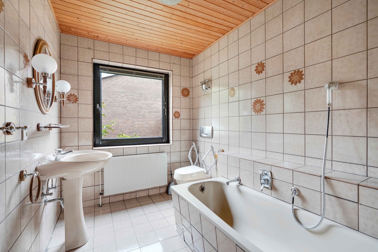 – Badezimmer mit Badewanne und Fenster im EG