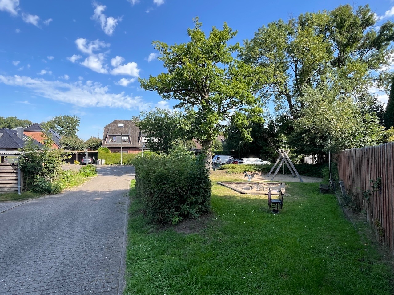 Ein wunderschöner Garten mit einem über 40 Jahre alten Walnussbaum, der so reichlich Früchte trägt, dass Sie den ganzen Winter über versorgt sind, prägt das Grundstück. Direkt gegenüber befindet sich ein Ponyhof und auf dem kleinen Dorfplatz vor dem Haus lädt ein Spielplatz die Kinder zum Toben ein. Die ruhige Sackgassenlage sorgt zudem dafür, dass die Kleinen unbeschwert in der Nachbarschaft spielen können und darüber hinaus die ca. 350m entfernte KITA und Grundschule in nur 5 Minuten Fußweg erreichen können.