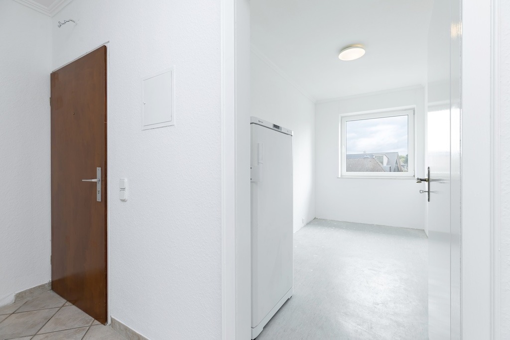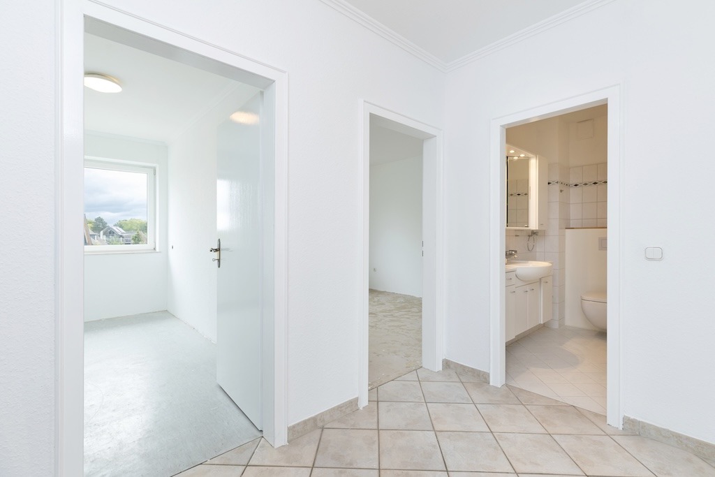 Die Räume wurden vom derzeitigen Eigentümer frisch gestrichen und die Türen weiß lackiert. Der Bodenbelag in den Zimmern wurde entfernt, so dass ein neuer Eigentümer den Fußboden nach eigenem Geschmack gestalten kann. Der Flur und das Badezimmer sind mit Fliesen belegt.